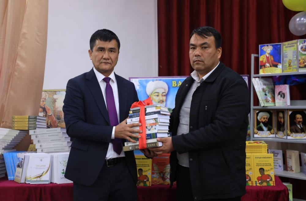 Maʼnaviy tadbir doirasida Uyushma raisi v.b. X. Salimov o‘zi o‘qigan ushbu maktab kutubxonasiga o‘qituvchi va o‘quvchilarni birdek qiziqtiradigan 500 donaga yaqin kitoblar sovg‘a qildi.